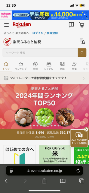 例 「楽天ふるさと納税」で探す